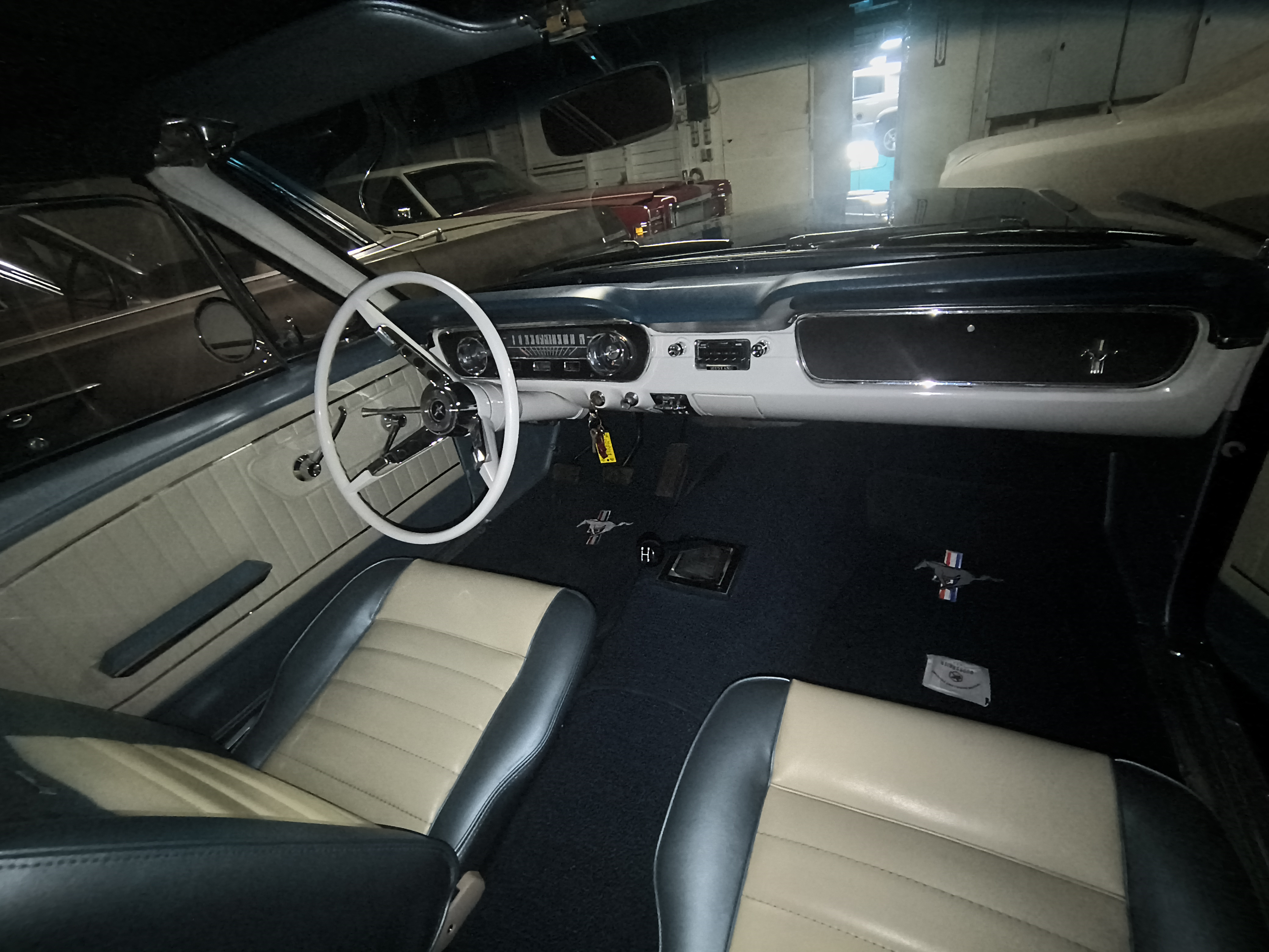 Officially introduced in April of 1964, the Ford Mustang was a smash success right out of the gate...or should we say corral? These early Mustangs (produced March through August of 1964) were officially early 1965 models. Still, they became known as 1964 1/2 models due to both their early production and their differences between Mustangs that were produced after that point, such as the generator being replaced by an alternator. Here we have an amazing example of an early Mustang convertible that checks all the boxes condition, colors, powertrain. This car was the subject of a high-end, ground-up restoration that likely produced a classic Mustang that is better than new in terms of fit and finish. Covered in beautiful Caspian Blue, the arrow-straight and rock-solid body looks fantastic. Along with the gleaming chrome and stainless-steel trim, the white convertible top and the chrome styled steel wheels (that were introduced as an option on the '66 Mustang) The underside is so clean that it earns our "Lasagna Car" status, meaning it's so clean we'd eat our Sunday pasta off of it. Inside, it looks as if you've stepped into the Mustang brochure, as the interior similarly looks factory fresh. A small but worthwhile liberty was taken as the seats were fitted with the optional two-tone "Pony" style upholstery which looks great with the car's exterior colors. Everything from the dash top to the carpet is in pristine condition. Under the hood is the factory 260 V8 that is accented with a chrome open-element air cleaner and valve covers. As with the rest of the car, the ultra-clean engine compartment looks like a page lifted out of the brochure. The factory 3-speed manual gearbox along with manual steering and brakes adds to the fun, engaging character of driving this Mustang. Underway, the car runs tight, smooth, and strong. The small but peppy V8 sounds great, especially while winding it up as you run through the gears on your favorite back road. The convertible top further boosts the already high fun factor of this iconic Mustang. For more information or to schedule time to see this incredible icon, just give us a call at (203) 723 - 2707.